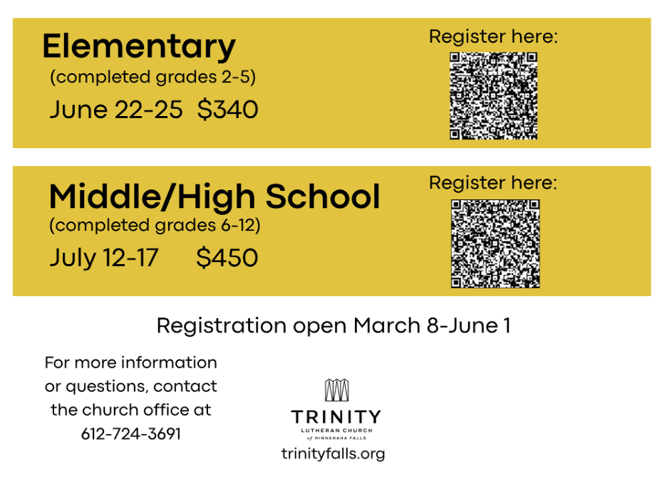 Trinity’s Summer Camp is held at Camp Patmos which is located near Hackensack, MN.